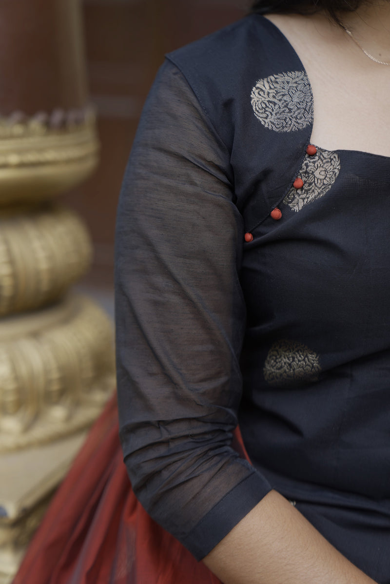 African Baobab trees Kancheevaram Silk Saree in Shiny Purple