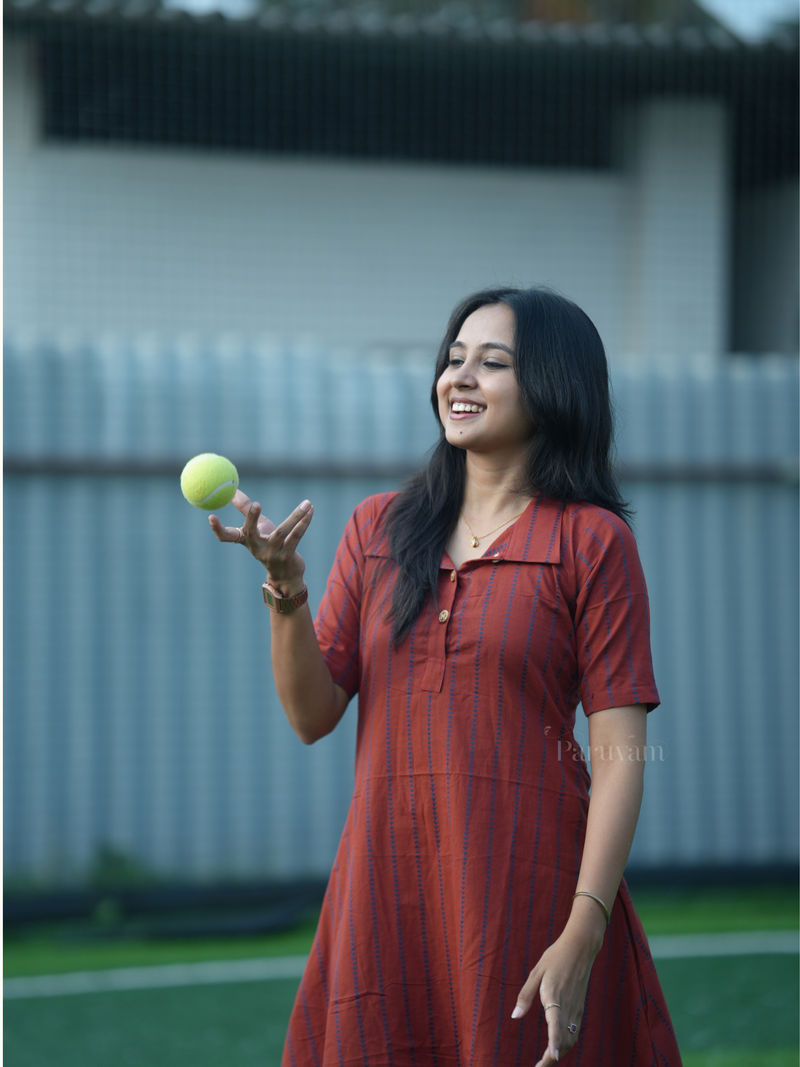 Maroon with blue striped breezy shirt dress