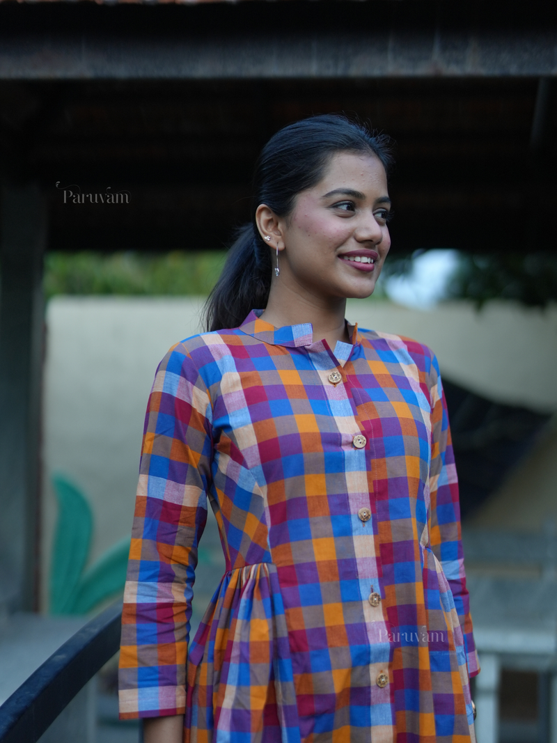 Multi-color madras checks handloom short dress