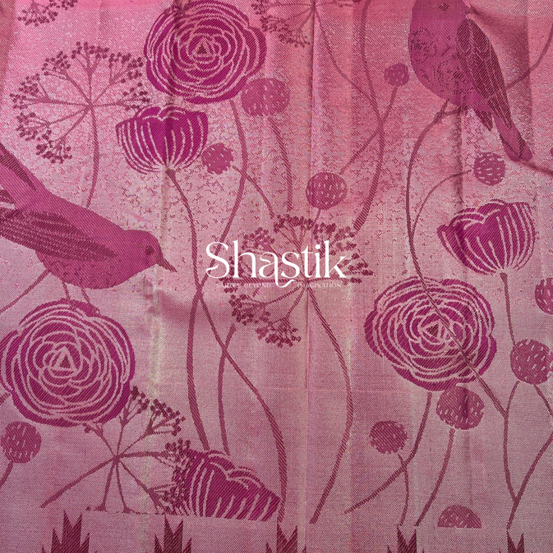 The Royal Peacock silk saree in salmon pink and purple mauve