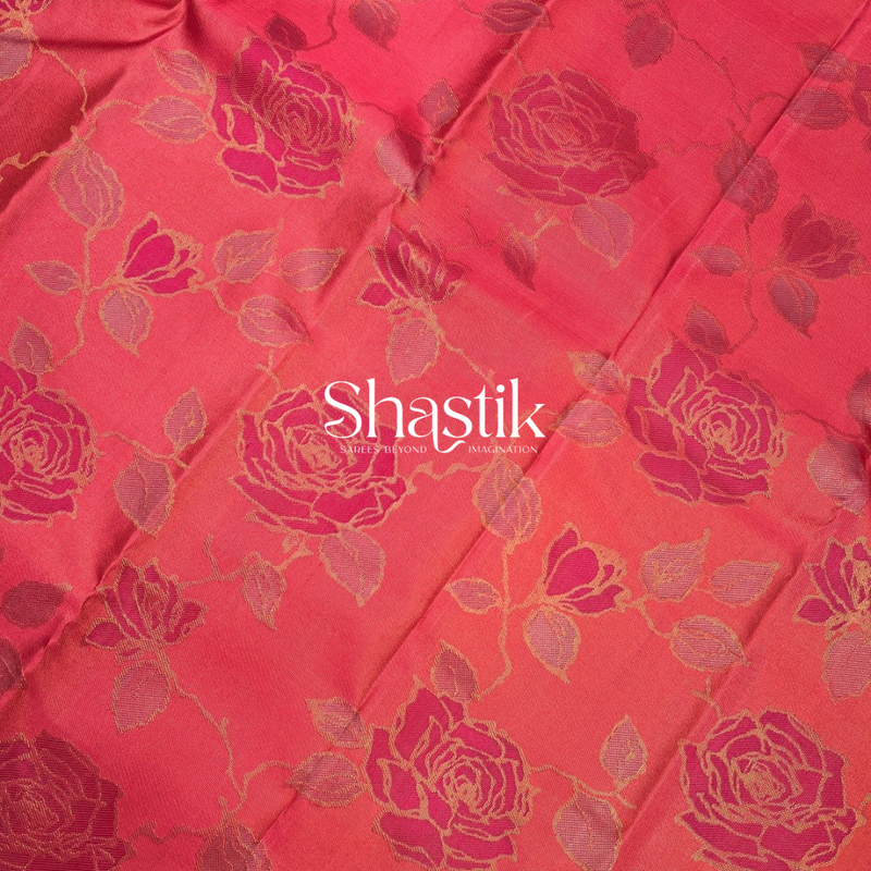 Climbing roses Contemporary silk saree in pink