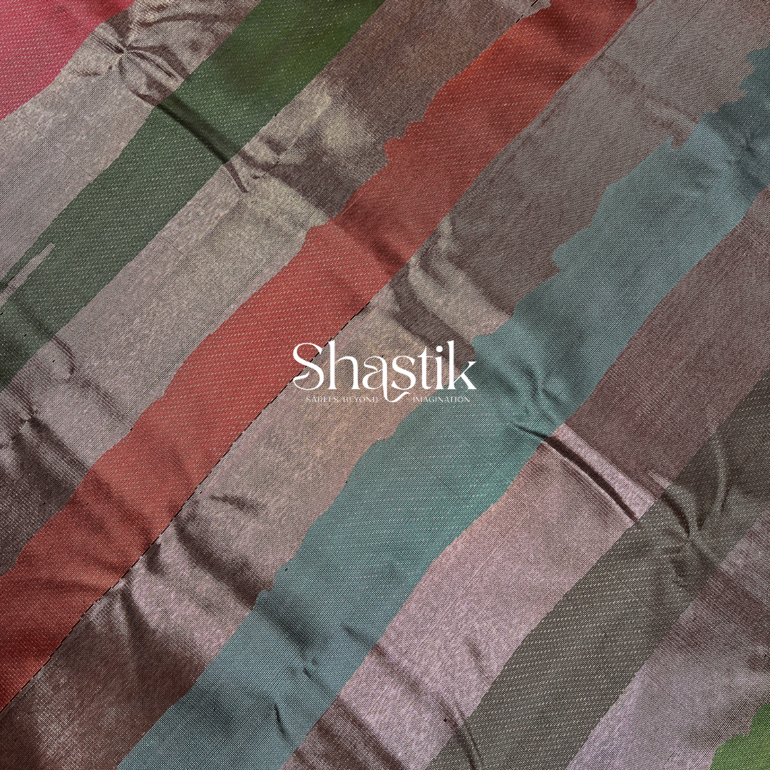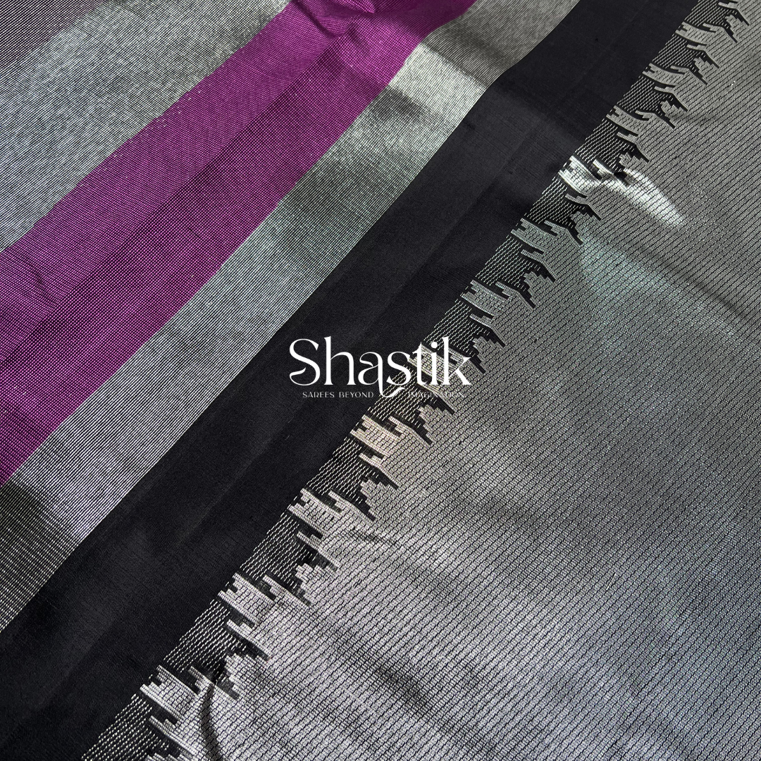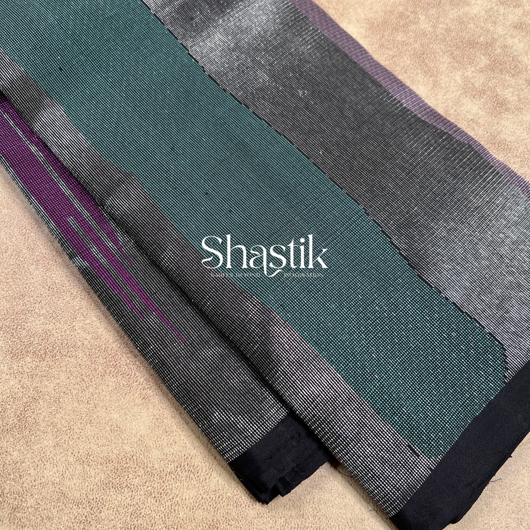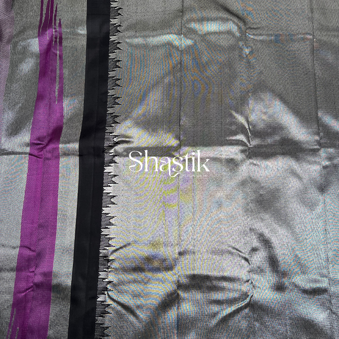 Unconventional wedding saree in black seamlessly blends tradition with modern artistry. The shimmering silver base enhances its luxurious appeal, while the colorful brushstroke patterns add a unique, modern touch. Each stroke is masterfully woven to appear as if hand-painted, giving the saree a bespoke quality. A perfect choice for those seeking an unconventional wedding dress