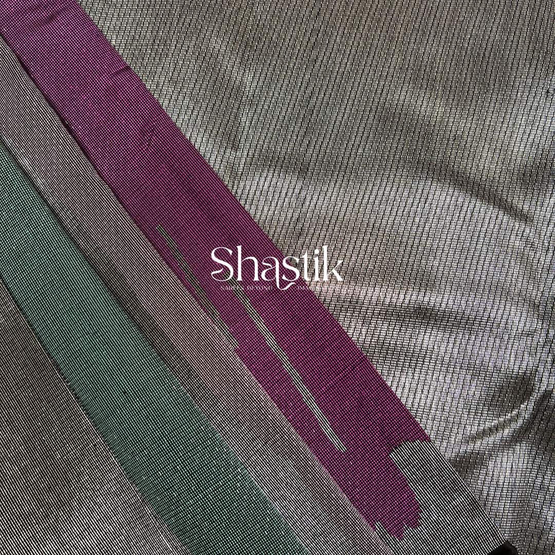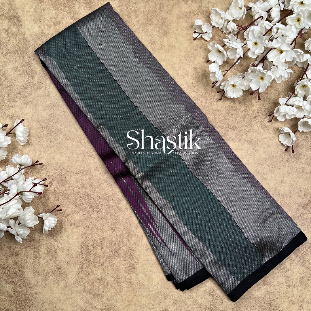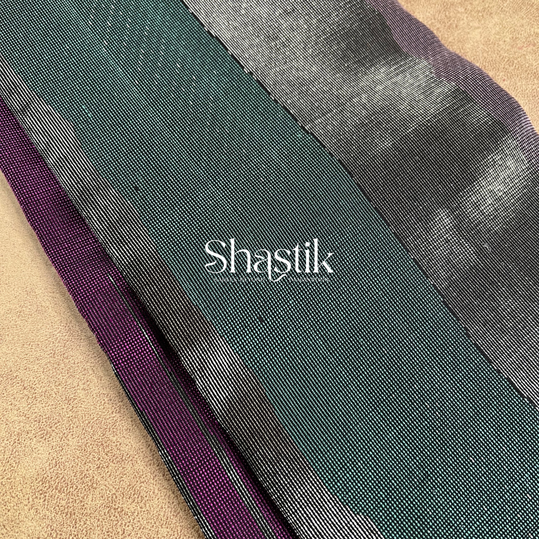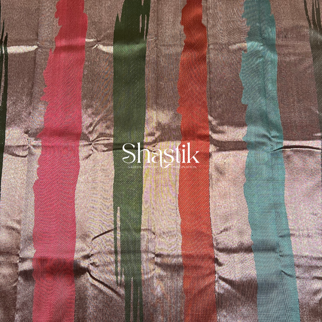 Unconventional wedding saree in black seamlessly blends tradition with modern artistry. The shimmering silver base enhances its luxurious appeal, while the colorful brushstroke patterns add a unique, modern touch. Each stroke is masterfully woven to appear as if hand-painted, giving the saree a bespoke quality. A perfect choice for those seeking an unconventional wedding dress