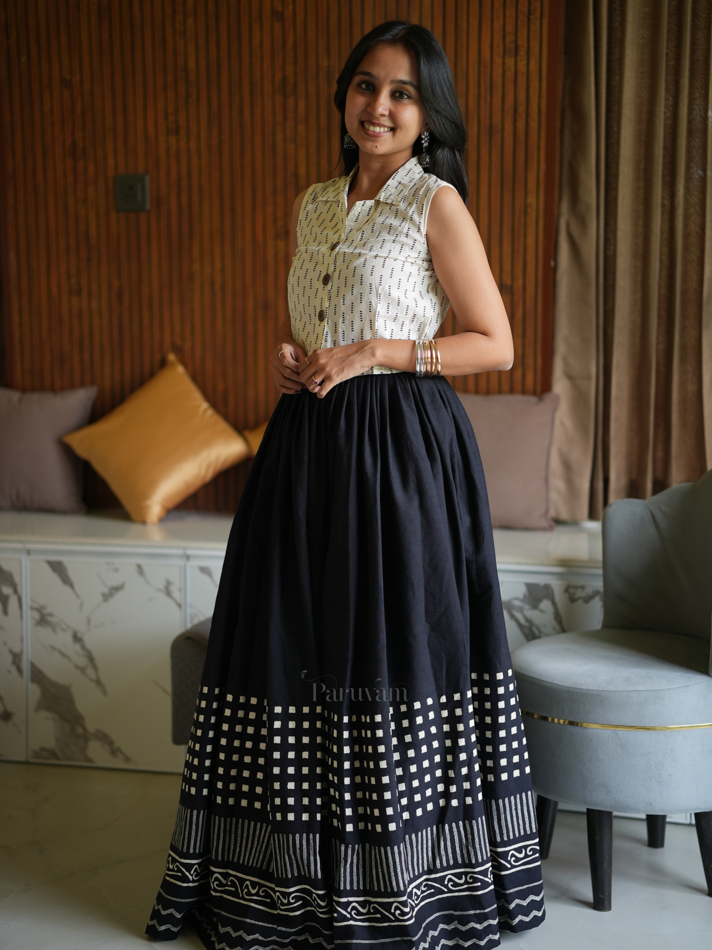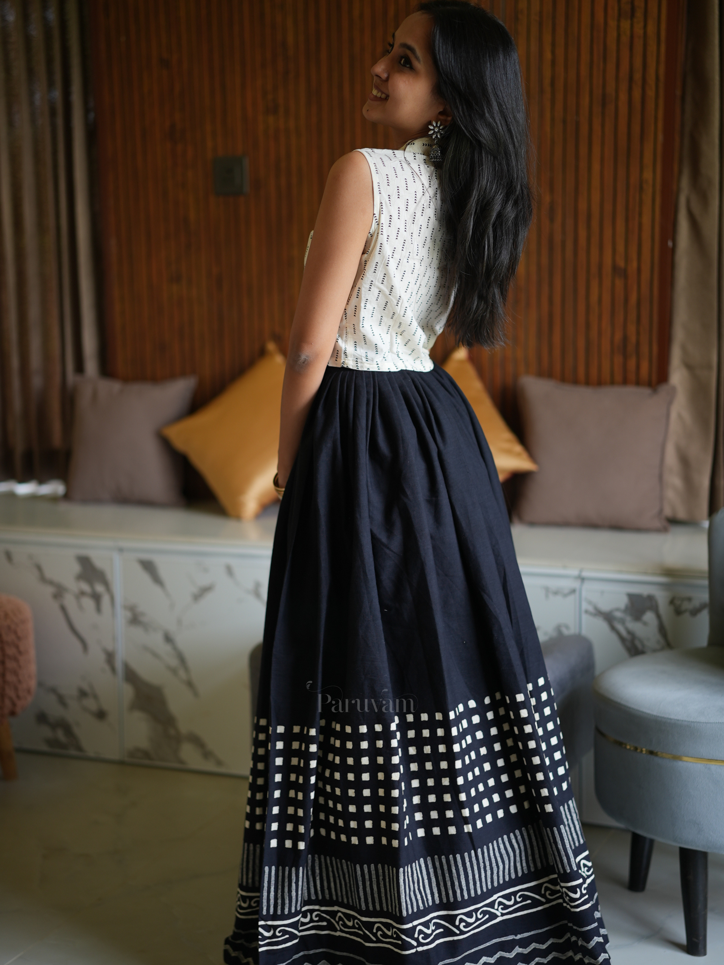 Black Handloom Linen Cotton Long Skirt